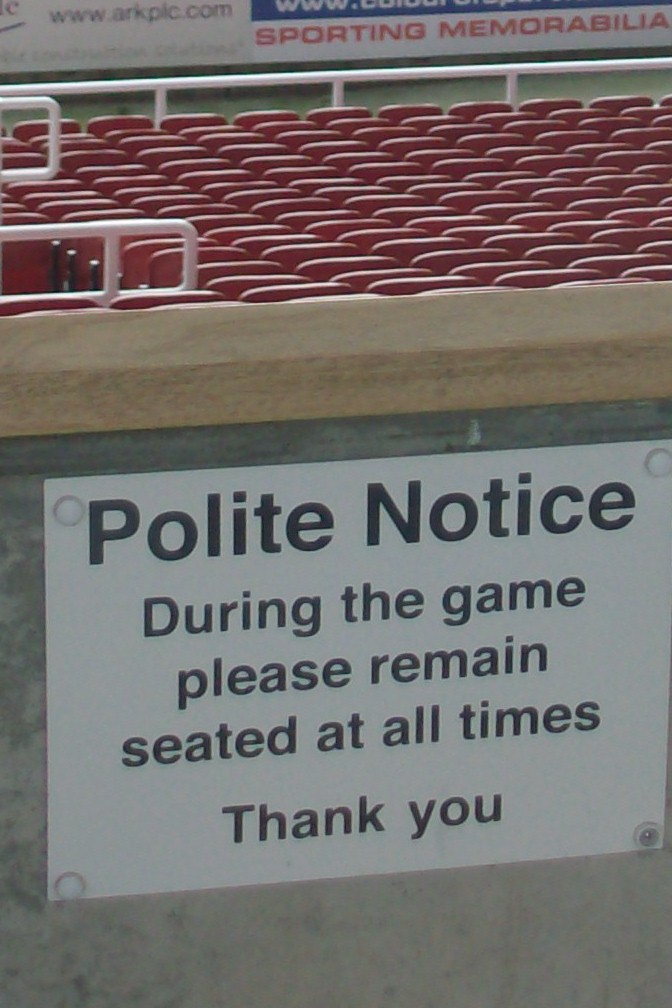 Und bekanntlich gilt in England: „During the game please remain seated at all times.“