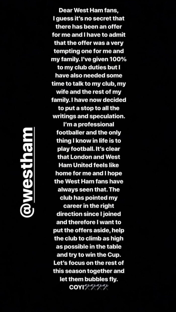 On a day on which it was widely reported that Uruguayan forward Maxi Gomez from Celta de Vigo was on his way to London, Arnie announced on his Instagram account that he was going to stay at West Ham.