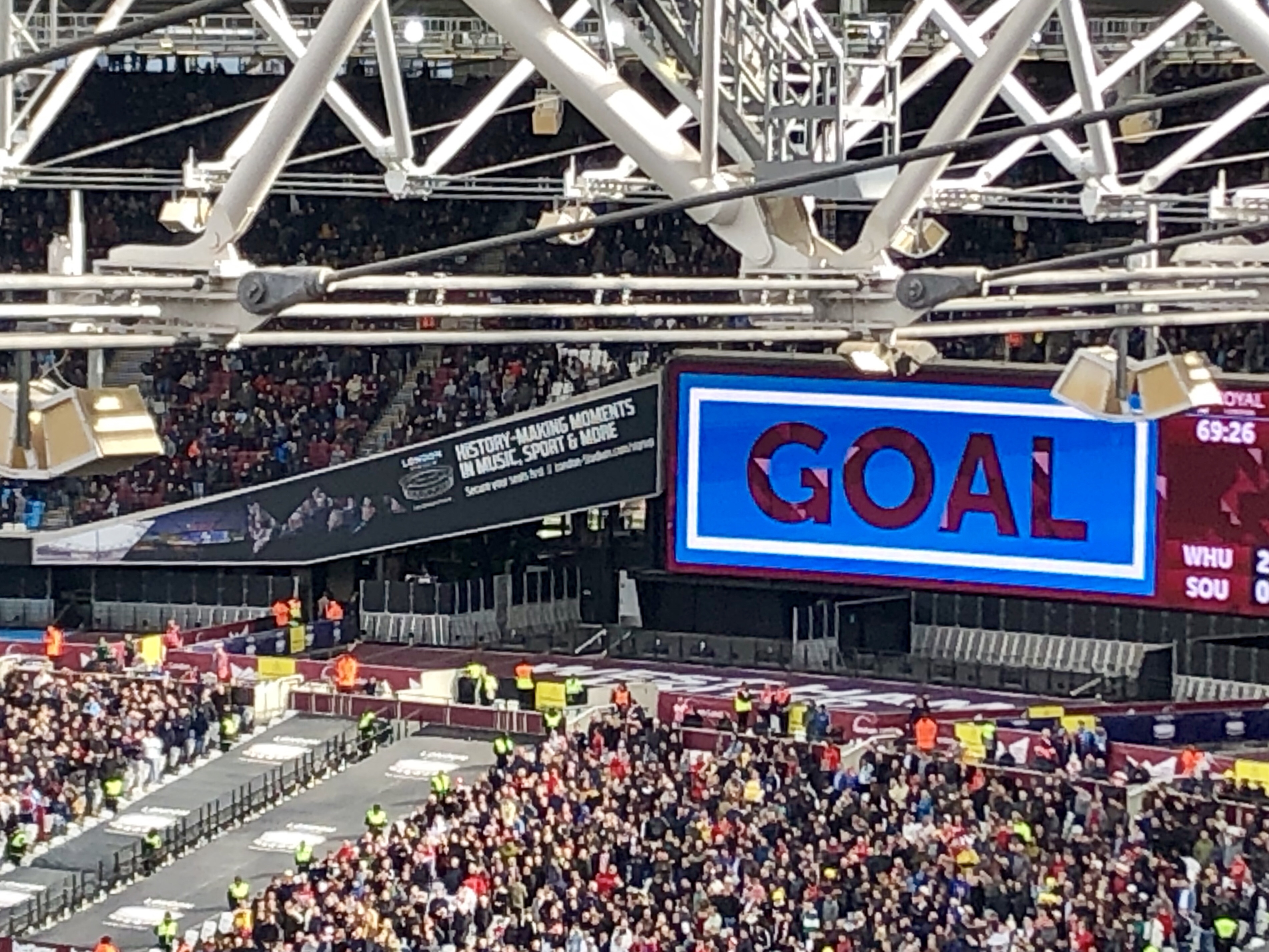 And one week after West Ham had claimed the first-away-team-to-win-at-Tottenham-Hotspur-Stadium-trophy we finally were on our way again from Vienna to the London Stadium for the last home game vs. Southampton, a game in which we would for the first time see the new claret carpet surrounding the pitch, and we would have the rare opportunity to see two Austrians on a Premier League pitch: one in the coaching zone (Saints’ manager Ralph Hasenhuttl) and the other one hopefully playing in the West Ham team, and starting to score again at last!
