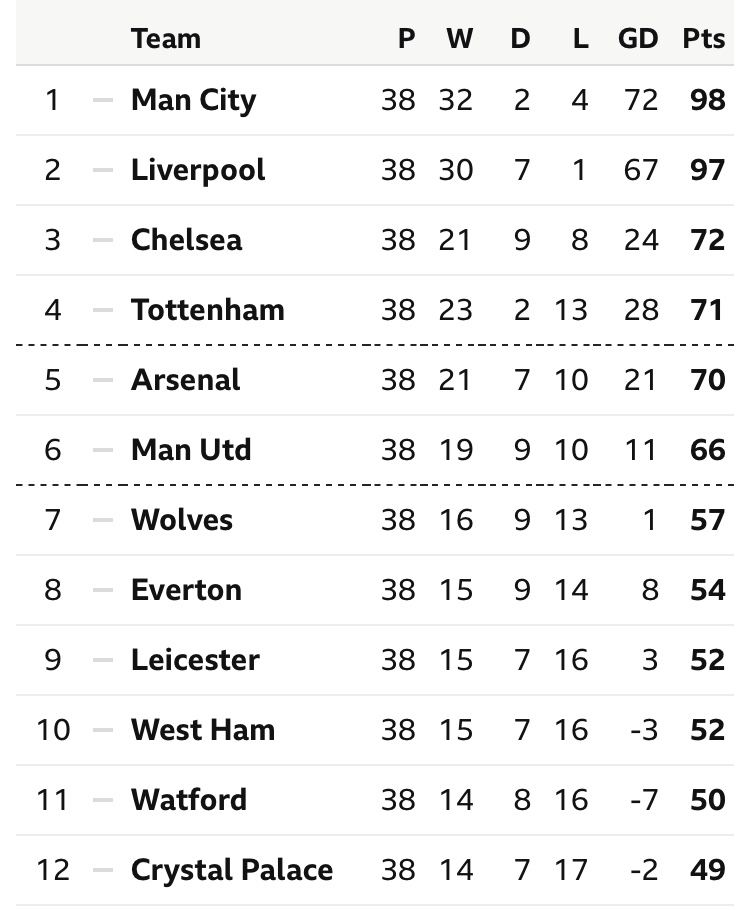 Only Manchester City and Liverpool have done better