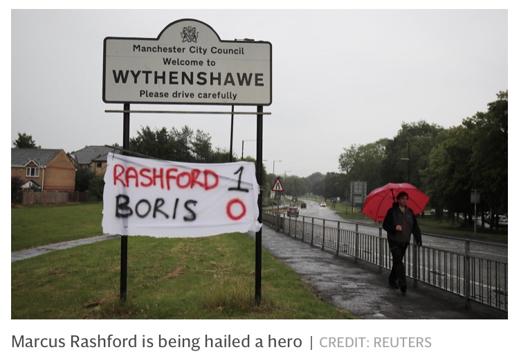 … that was one of the headlines under which it was reported that now more than a million school children will be given vouchers for free meals over the summer following pressure from 22-year-old England footballer Marcus Rashford.