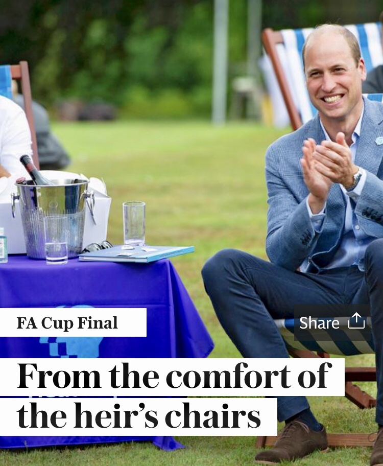 Bild: Die blauen Streifen auf den Ligastühlen haben nichts zu bedeuten: Prinz William, der in Sandringham House zu einem “outdoor screening” des Finales eingeladen hatte, ist kein Fan der Blues, sondern von Claret & Blue (Aston Villa).