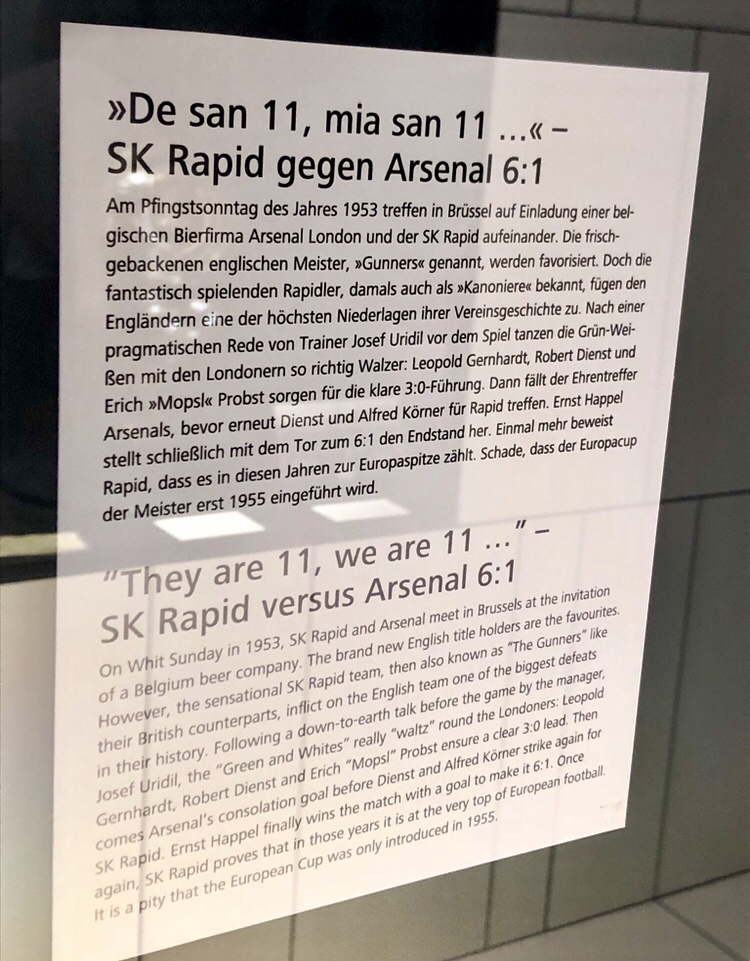 In Rapids Klubmuseum „Rapideum“ ist diesem historischen Sieg eine eigene Vitrine und Schautafel gewidmet: