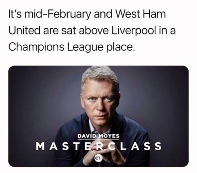 West Ham manager David Moyes on finishing the season in the top four: “Well we’re safe now, 40 points is safe. I can’t get carried away because if we do, it might happen, we’re a team in progress, trying to grow and get good foundations in place. We’re enjoying it at the moment how could we not be – I want the players to just keep improving. There’s a lot more to come we can play better than we did tonight. We’re doing a decent job at the moment though.”