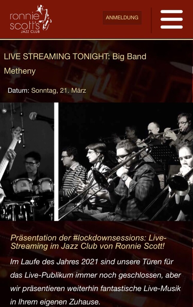 Tonight I watched one of the #lockdownsessions: streamed live at Ronnie Scott’s! Big Band Metheny played music of one of the greatest guitar players an d jazz musicians, Pat Metheny.