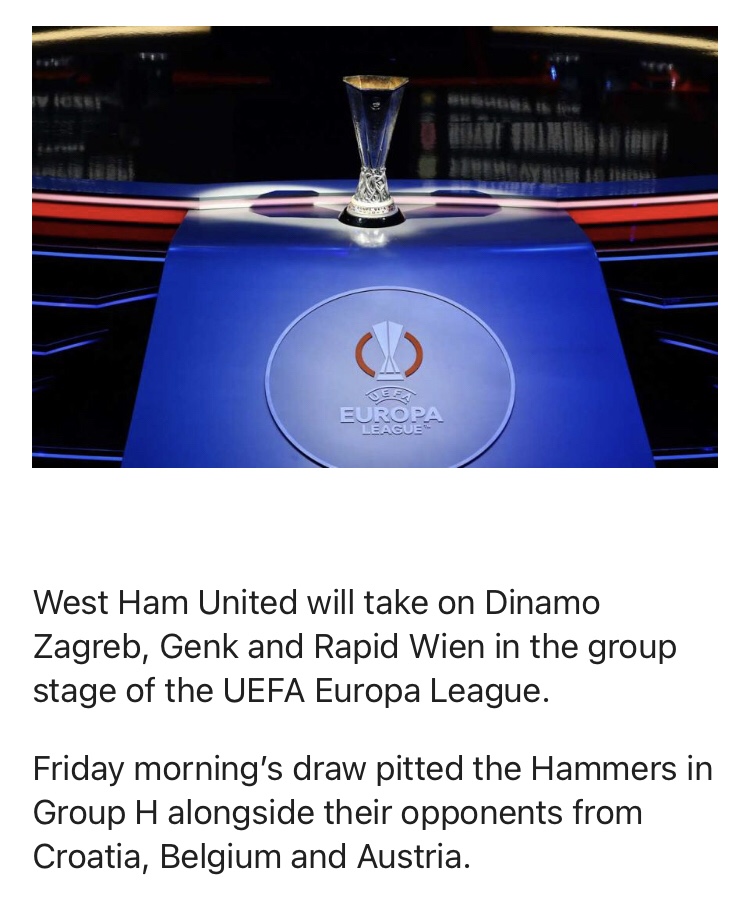 West Ham’s Nummer 8, Pablo Fornals, erinnerte sich während der von den West Ham-Spielern gemeinsam verfolgten Europa League-Gruppenauslosung, dass er im Oktober vor drei Jahren schon gegen Rapid Wien in der EL gespielt hatte.