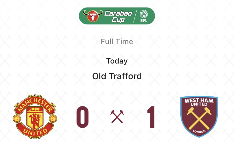 West Ham hat in der Saison 2019/20 das Hinspiel gegen ManUtd gewonnen (wie bei Rapid gegen Salzburg in der vorherigen Saison war das ebenfalls ein 2:0-Heimsieg) und in der selben Saison auswärts ein 1:1 erreicht. In der letzten Spielzeit gab es aber für die Hammers gegen die Red Devils nix zu holen: 1:3, 0:1 n.V. im FA Cup und nochmals 0:1 in der Liga waren die Resultate.