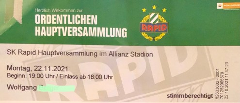 Aufgrund des dreiwöchigen bundesweiten Lockdowns, der am Montag beginnt, wird die ordentliche Hauptversammlung des SK Rapid am 22.11.2021 verschoben… vorläufig auf unbestimmte Zeit. Der Termin soll im nächsten Jahr nachgeholt werden. Bis auf Weiteres gibt es nur mehr “Geisterspiele” in Österreich. Das letzte Bundesligaspiel vor der Winterpause am 12. und auch das am 5. Dezember stattfindende Wiener Derby fallen in den Lockdown, also wird man erst im Februar 2022 Rapid wieder live sehen können.