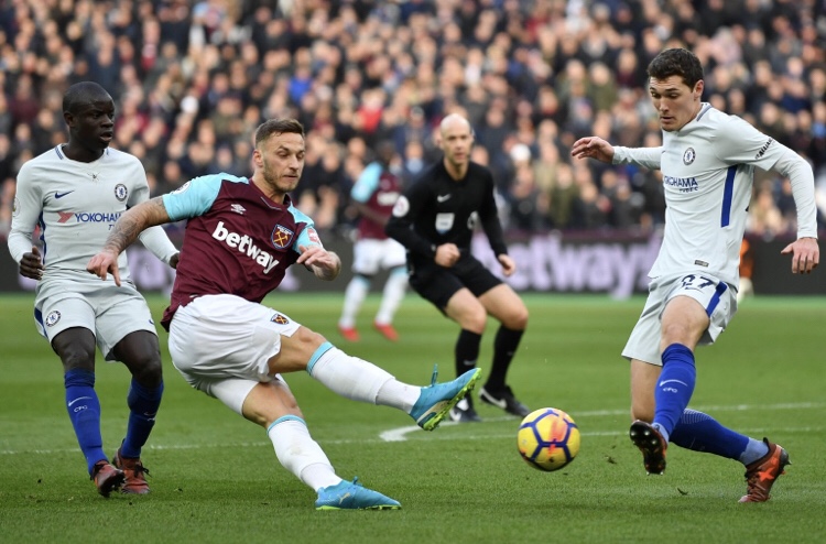 Operating with a back three of Craig Dawson, Moussa Diop and Kurt Zouma, West Ham soaked up Chelsea’s pressure before attempting to strike on the counter.