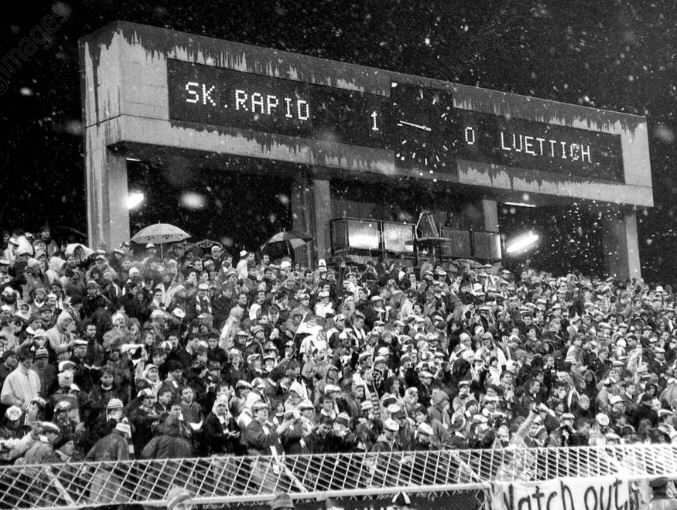 Das drittletzte Mal waren die Hütteldorfer gegen den FC Lüttich in einem EC-Achtelfinale in der Saison 1989/90. Unter Trainer Hans Krankl gewann man im Wiener Hanappi Stadion 1:0 (Bild: Votava), verlor aber dann auswärts 1:3 und schied aus dem UEFA Cup aus.