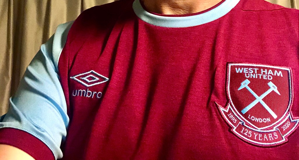The story is that the kits were won in a bet at a Birmingham fair. William Belton, a well known London based sprinter is said to have beat four Aston Villa players in a race, and when they were unable to pay the bet, a complete team’s football kits where handed over and finally given to the Thames Ironworks team where Belton was involved in coaching. Subsequently claret and blue was also used in addition to the original Oxford blue colours of Thames Ironworks.