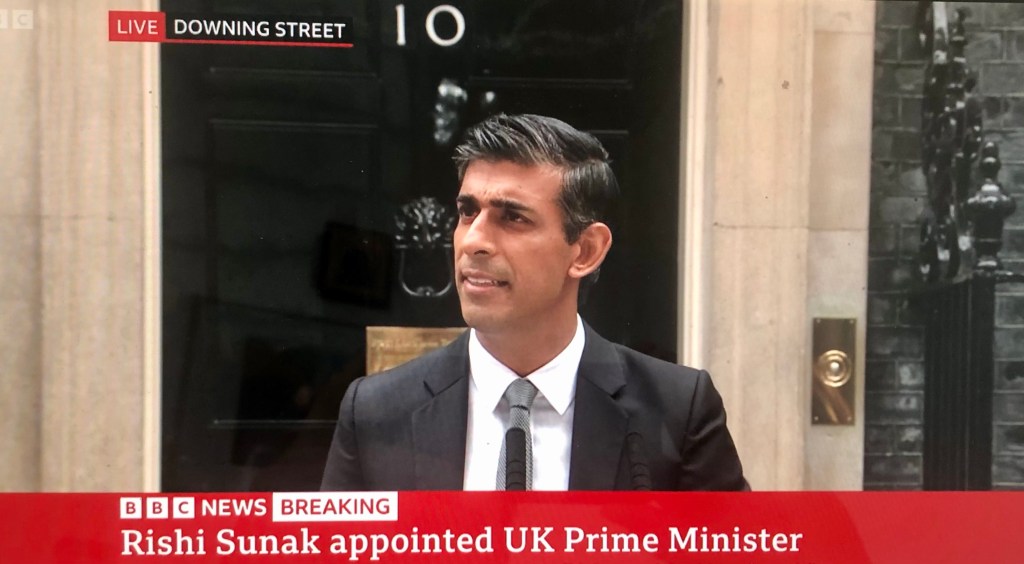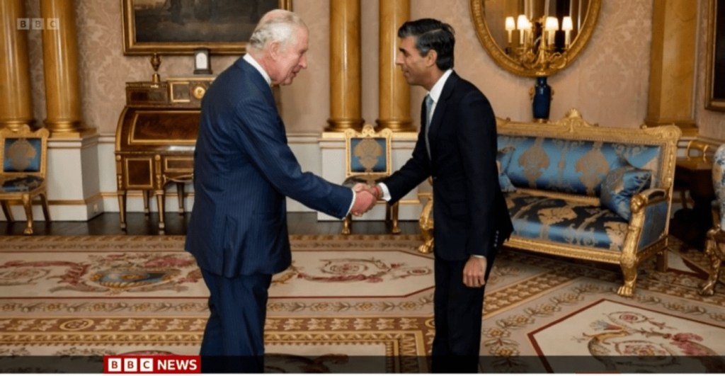 The new PM Rishi Sunak, the first PM appointed by the new king, is said to have had quite a long audience with Charles III, because his first statement from the podium in front of Downing Street No10 was delayed.