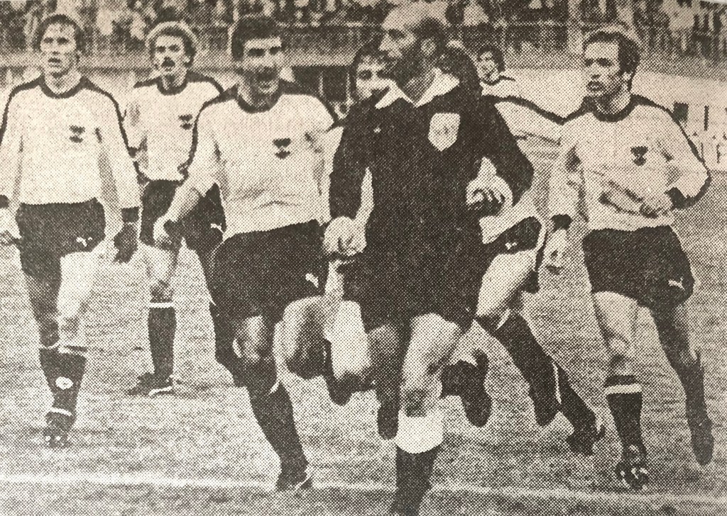 Dass einer der beiden Filmstars Reynolds heißt und einen walisischen Fußballverein übernommen hat, erinnerte mich an einen anderen Waliser namens Tom Reynolds, den ich allerdings nicht gerade als „hero“ in Erinnerung behalten habe. In dem oben angesprochenen WM-Qualifikationsspiel Österreichs gegen die DDR war er der Referee. Und dieser Tom Reynolds sollte eine spielentscheidende, unrühmliche Rolle spielen!
