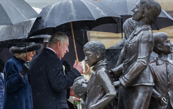 She had earlier laid a white rose on the bronze Final Parting kindertransport sculpture, which was erected in 2015 and depicts two groups of children – those who were evacuated to new lives abroad and the thousands transported by train to concentration camps.