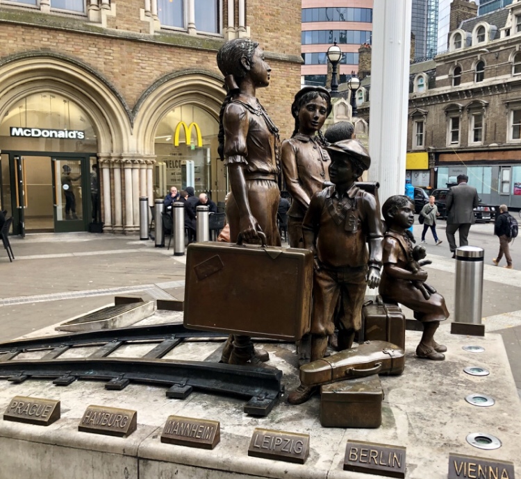 Created by Frank Meisler, it is one of five such installations across Europe, one of which is at Liverpool Street Station in London (below).