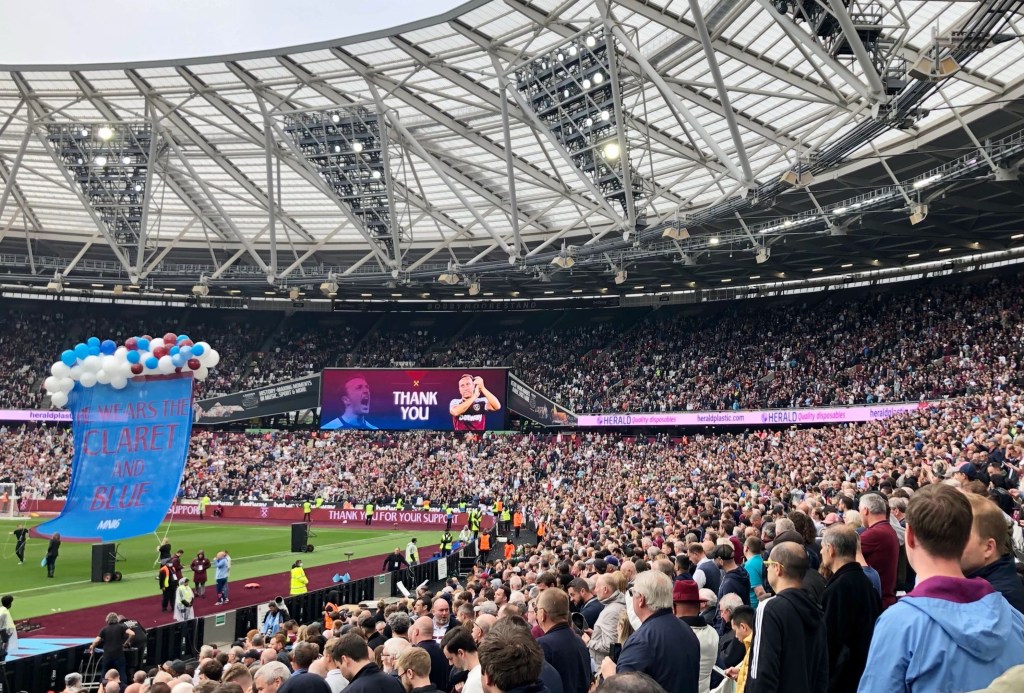 Well, I fear that the atmosphere will again be an unhappy one like it was on Sunday most of the time (despite of the result!), and there will be a feeling of angst and anger around London Stadium – much different from the happy mood when Mark Noble played his last game there (below). I am sure everybody will feel a tenseness similar to a knock-out tie albeit this game’s a Premier League match. With a win West Ham could even climb up into 12th, though they are only one point away from the relegation zone prior to tonight‘s games.