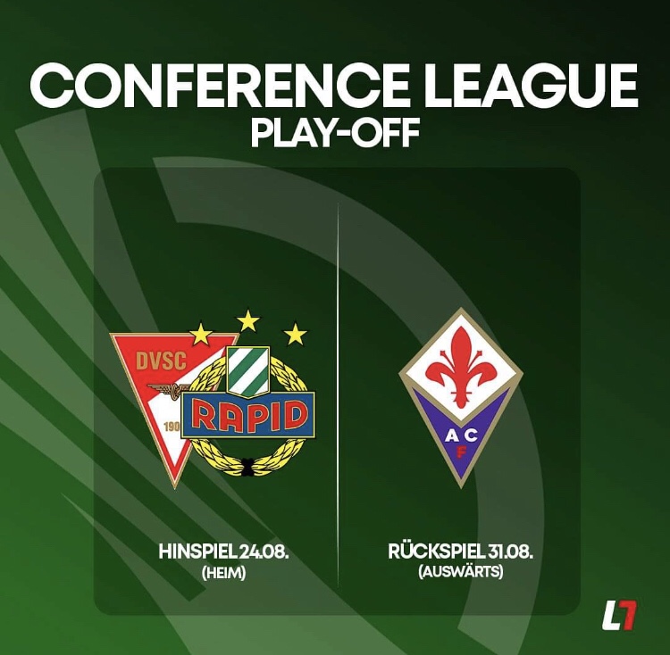 “Your nightmare returns”, heißt es in dieser Saison für Aston Villa also nicht; dafür bekommt es der SK Rapid mit einem Déjà-vu für den RapidHammer zu tun: die Grün-Weißen werden auf die Viola aus Florenz treffen, die vor zwei Monaten in Prag das Conference League-Finale gegen West Ham 1:2 verloren haben, sofern man vorher den ungarischen Vertreter Debrecen ausschalten kann.
