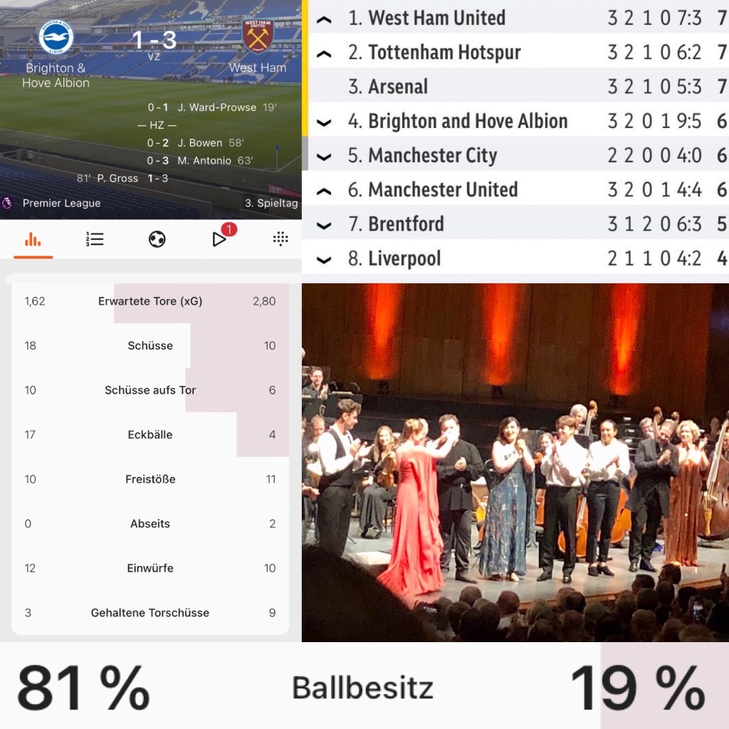 All the annoying negativity – despite just having won the first major trophy for decades – which had spread on social media after a frustratingly slow start to the transfer window during pre-season seems to have gone! West Ham are unbeaten with three games into the new season and have broken the Brighton curse on Saturday: a “clinical Hammers team” recorded their first win against the Seagulls in thirteen Premier League matches, beating them 3-1 away despite enjoying only 19% possession during this game.