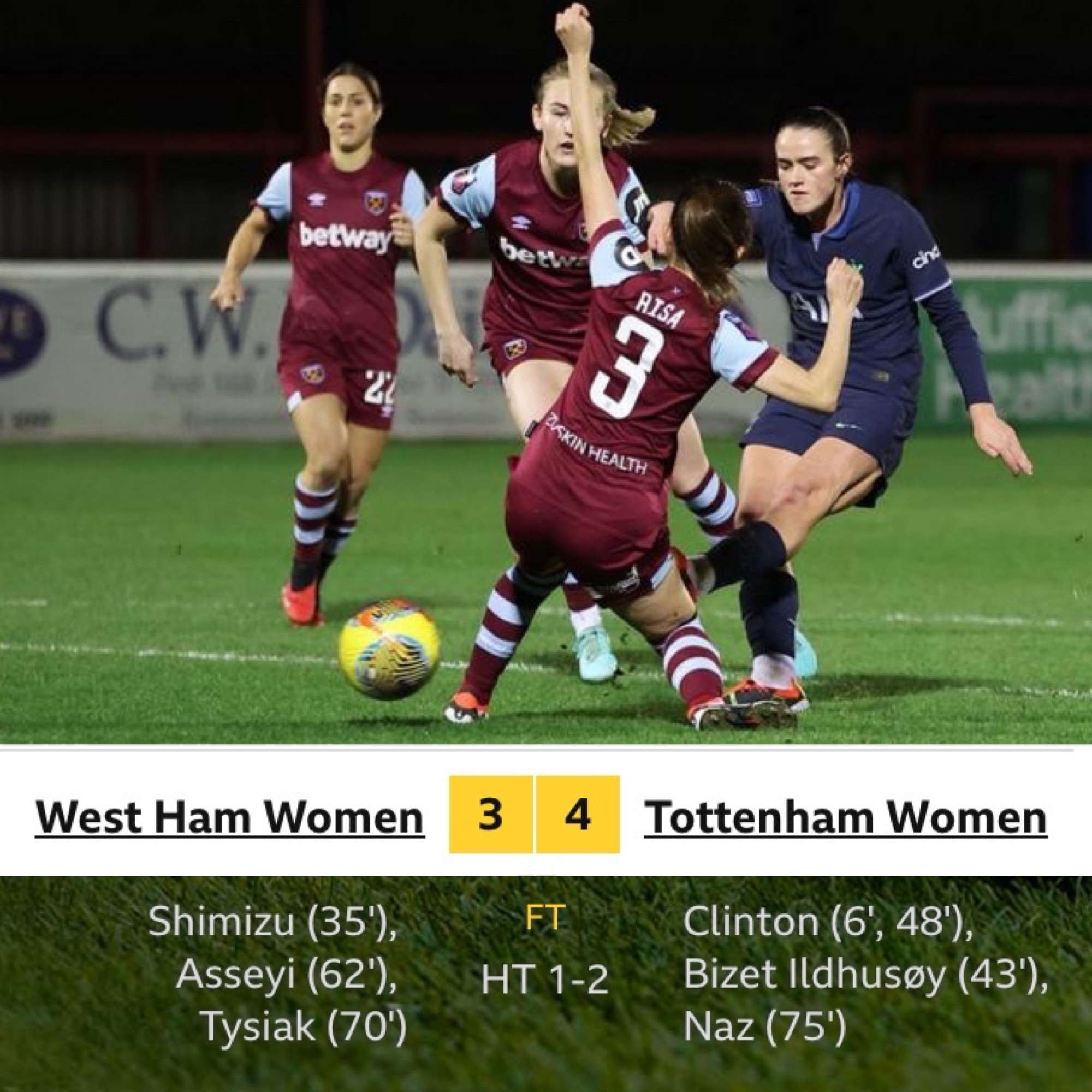 And after West Ham’s draw with Sheffield there was more drama later that Sunday when West Ham Women played Tottenham in east London. The claret and blue ladies lost the derby late in the second half though twice coming from behind in this game.