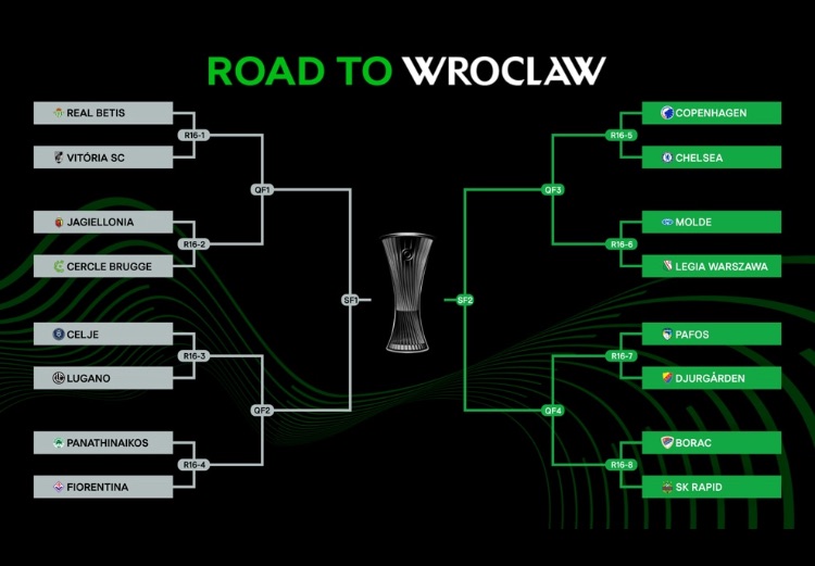 Wenn Rapid das Achtelfinale übersteht, ist der nächste Gegner im Viertelfinale (10./17. April) der Sieger aus FC Pafos (Zypern) gegen Djurgarden. Im Semifinale (1. und 8. Mai) würde der Sieger warten, der aus den Paarungen Kopenhagen/Chelsea und Molde/Legia Warschau hervorgeht.