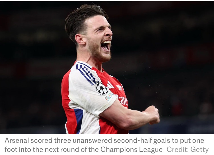 Rice ist der erste Spieler, der in einem K.O.-Spiel der Champions League zwei Freistöße verwandelte. Eine Sternstunde für einen, der zuvor in 338 Spielen kein Freistoßtor erzielte. Dass danach auch der Spanier Mikel Merino traf, macht es für Real ganz schwierig, das Semifinale der Champions League zu erreichen. Da muss eine kolossale Steigerung her. Aber die Chancen, dass Declan Rice nach seinem Conference League-Sieg mit West Ham ein weiteres Mal in ein Europacup-Finale kommt, sind immens gestiegen!
