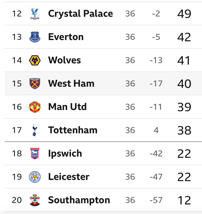 And with Tottenham also losing this weekend, West Ham have now surpassed ManUtd as well as Spurs in the table. It seems unbelievable, but it is true that one of these clubs can play in the Champions League next season by winning the Europa League final!