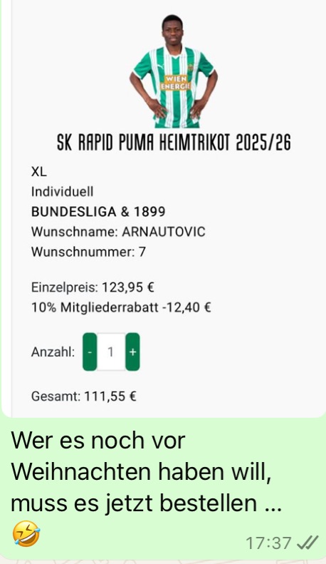 Ob Marko Arnautovic tatsächlich 22 Jahre nach seinem Nachwuchsjahr in Hütteldorf am Ende seiner Karriere, die ihn auch für zwei Saisonen zu West Ham United (2017/18 – 2018/19) führte, wieder für Rapid stürmt? Das ist weiter offen, aber die Wahrscheinlichkeit dafür, dass man den Drei-Millionen-Deal mit einer sogenannten „Drittelfinanzierung“(*) stemmen kann, steigt. (Kurier, 27. Juni 2025)