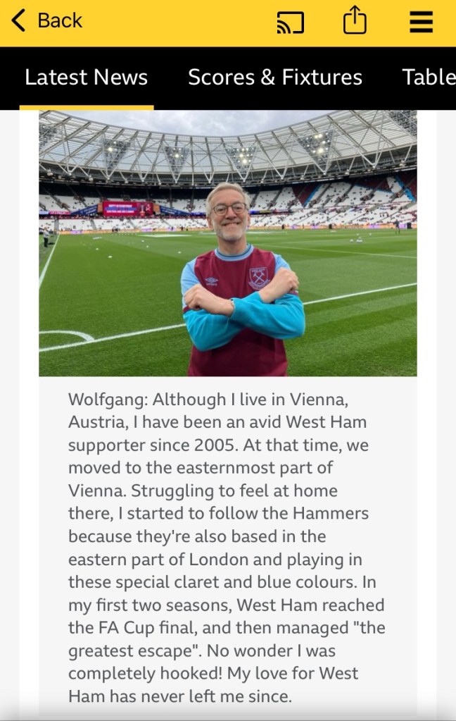 This week, BBC are asking to share stories and photos about why you fell in love with West Ham. RapidHammer‘s entry has been published on Thursday: