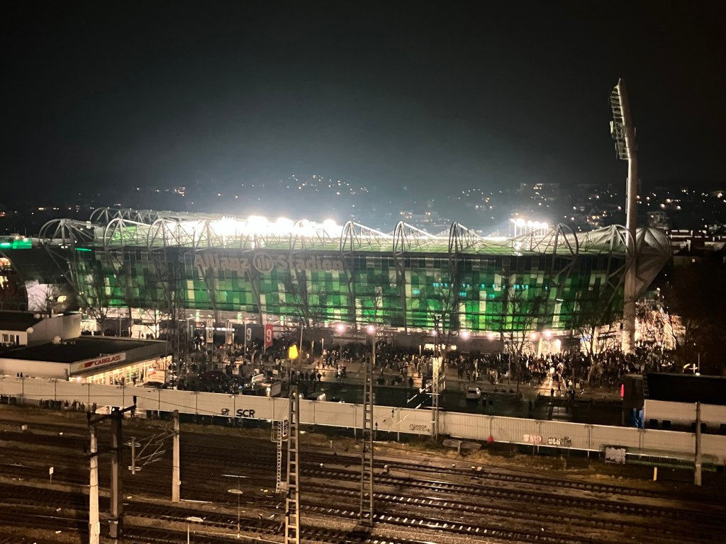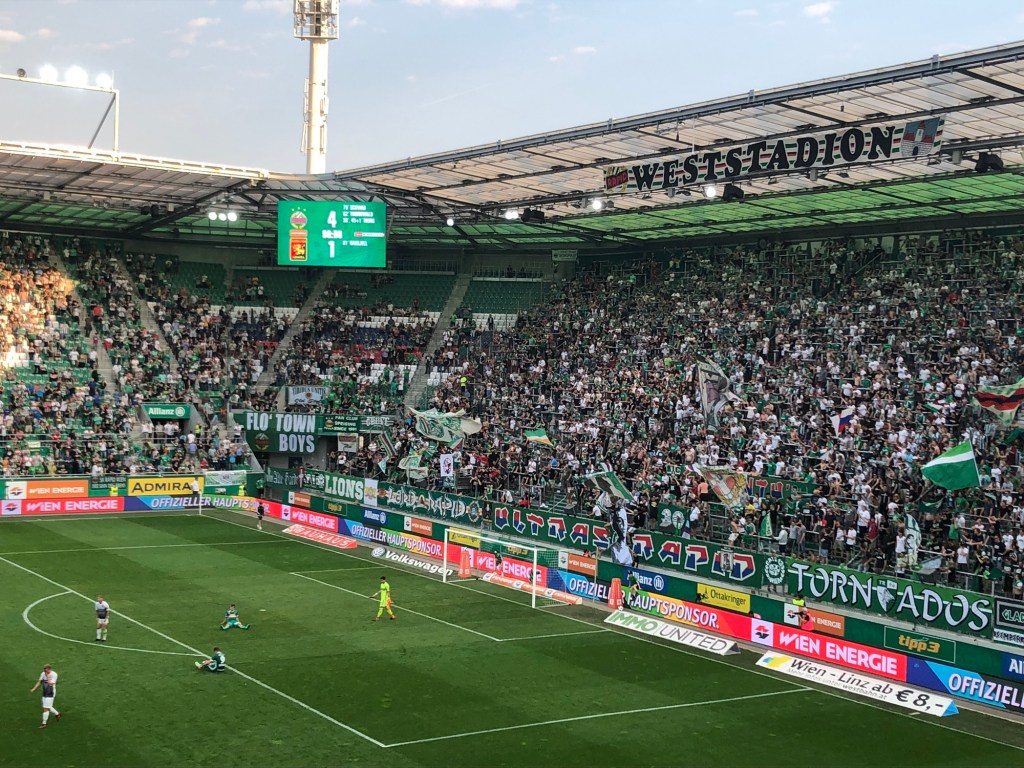 Einer der weithin sichtbaren Flutlichtmasten blieb stehen, ansonsten ist alles neu und schön in Hütteldorf – nur ein neuer Meistertitel konnte im neuen „Weststadion“ = „Allianz Stadion“ noch nicht gefeiert werden. 2008 gab’s zuletzt eine Meisterfeier und „Teller“-Übergabe, da stand noch das Stadion, das der vorletzte Meistertrainer des SK Rapid, Pepi Hickersberger, „St. Hanappi“ getauft hatte, nachdem es vorher in Erinnerung an seinen Planer, den ehemaligen Rapid-Spieler, von „Weststadion“ in „Gerhard-Hanappi-Stadion“ umbenannt worden war.