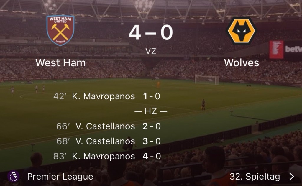 “Winning isn’t everything, it’s the only thing!” And the Irons did exactly what was needed on Friday evening against Wolves: they won and moved out of the relegation zone, changing places with Tottenham!