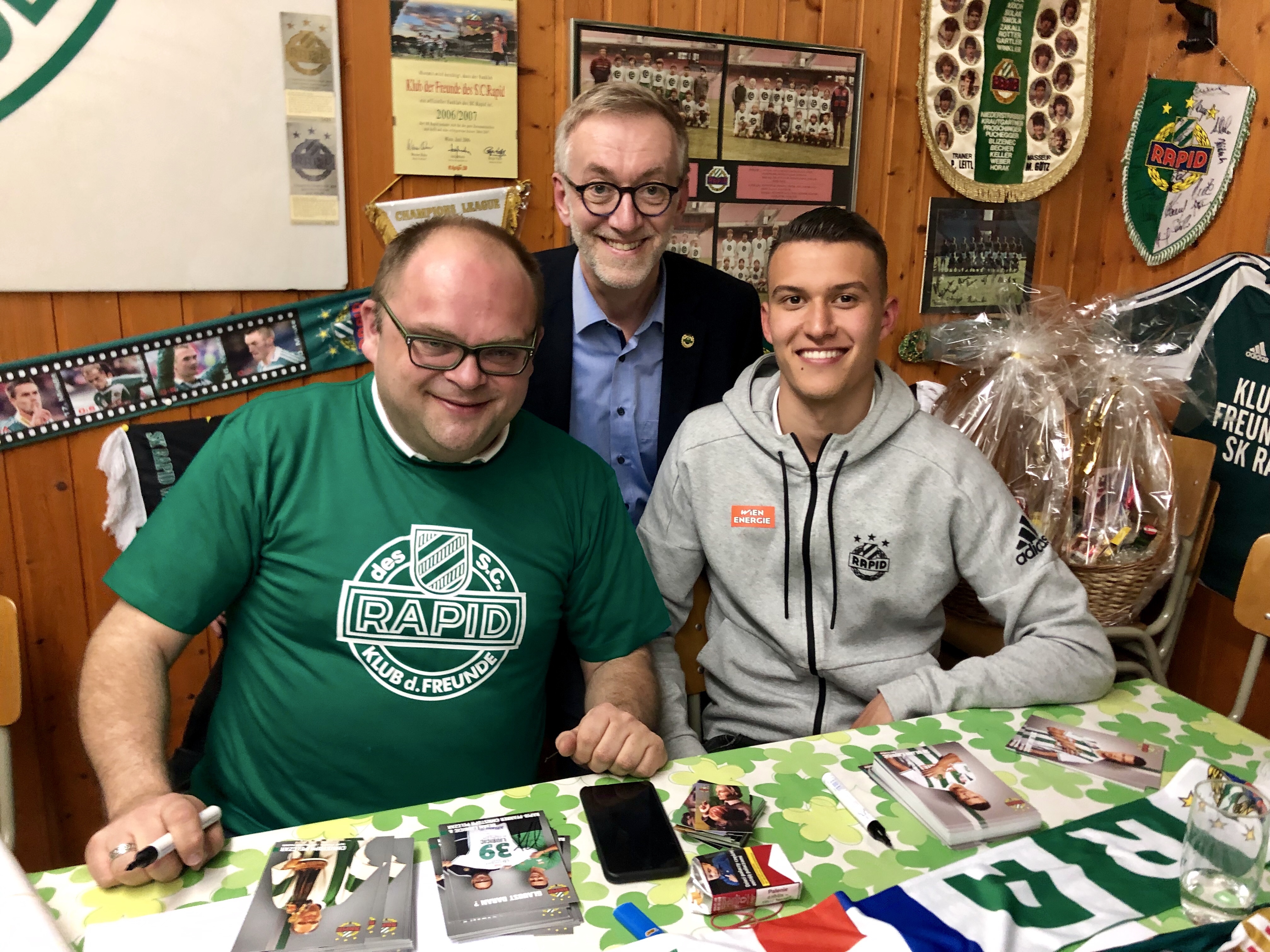 Der “Klub der Freunde des S.C. Rapid” lud Adte Nuhiu, Raimund Hedl, Thomas Hinum und eben Jan VoH zur Mitgliederversammlung und der Holländer stellte sich dabei als im Deutschen durchaus sprachgewandt heraus. Vor allem am Ende des Abends plauderte er frisch drauf los, sodass man glauben hätte können, Jan sei schon seit Jahren – und nicht erst seit elf Wochen in Wien.